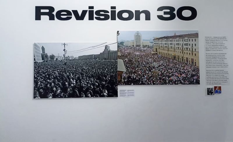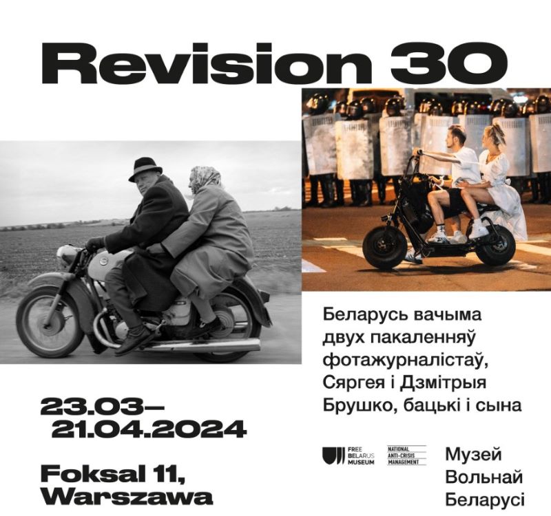 Выстава REVISION 30, якая адкрылася ў Музеі Вольнай Беларусі, выбудавана на аснове фотаархіваў Сяргея і Дзмітрыя Брушко – бацькі і сына. Лічба 30 у назве – гады паміж здымкамі. Фатаграфіі Дзмітрыя зроблены ў асноўным ў 2020‑м, адымаем трыццаць — і атрымліваем 1990‑я. Два пераломныя перыяды нашай гісторыі. Фотакніга са здымкамі Сяргея Брушко, прысвечаная першаму пераломнаму перыяду, так і называлася — «Змена».