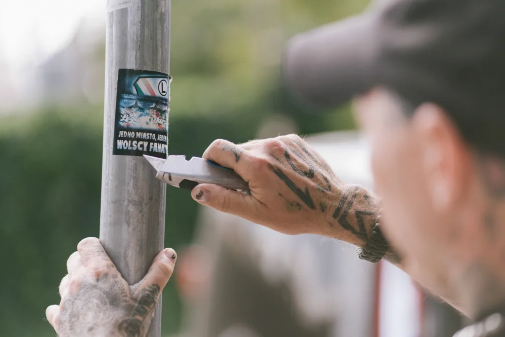 — Во второй части репортажа вы отметили, что у Игоря есть конфликт с фанатами польского клуба «Легия» — теми, кто имеют правые взгляды и агрессивно настроены к эмигрантам. Игорь на фото срезает наклейки клуба малярным ножом, который носит с собой. Музыкант признался вам, что фанатам не нравится, как он выглядит, так?