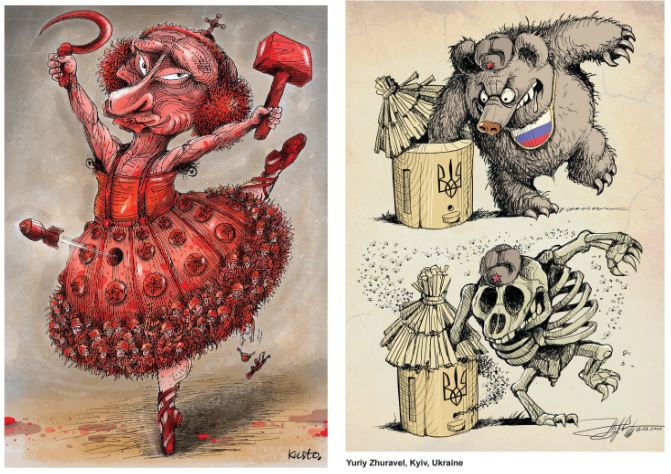 В журнале отмечают, что украинские карикатуристы «очевидно безжалостны к россиянам, демонстрируют юмор, не желающий сдаваться перед лицом произвола и террора».