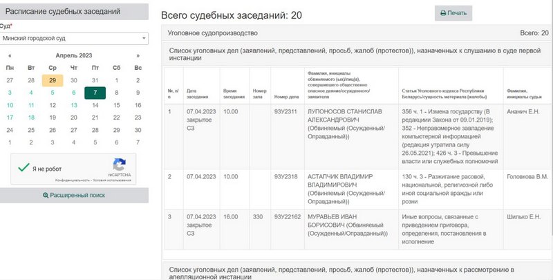 Як вынікае з раскладу, які публікуе сайт Вярхоўнага суда для сваіх структурных падраздзяленняў, па абедзе 7 красавіка суддзя Алена Шылько будзе разглядаць справу журналіста і прадпрымальніка Івана Мураўёва.