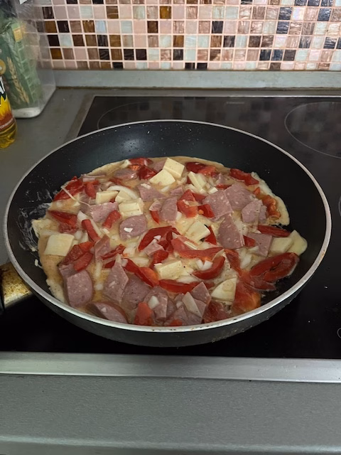 Пасля вызвалення: «спроба ўмясьціць на патэльню ўсё». Фота: старонка героя ў Facebook