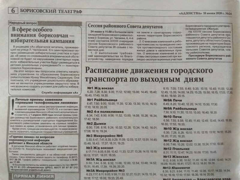 Газета “Адзінства”, друкаваны орган Барысаўскага райвыканкама, мае папяровую версію выдання і інтэрнэт-сайт. У электроннай версіі газеты апошняя публікацыя на тэму выбараў у адпаведнай рубрыцы “Выбары-2020” была зробленая амаль месяц таму — 19 чэрвеня.