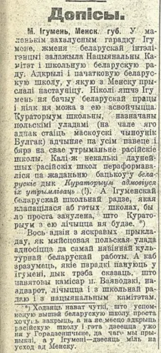 «Здавалася, што пытаньне аб беларусізацыі народнай асьветы так проста і ясна, што не патрабуе тлумачэньня. Няма ж у шырокіх кругах грамадзянскіх двух поглядаў на права вольнага культурнага разьвітку палякаў, украінцаў, латышоў і другіх народаў.