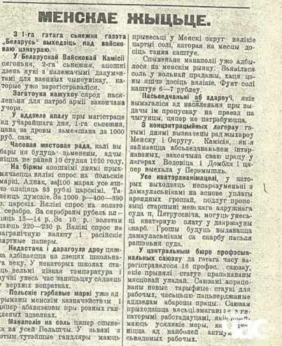 Газета «Беларусь» ад 22 сакавіка 1920 года (фрагмент)