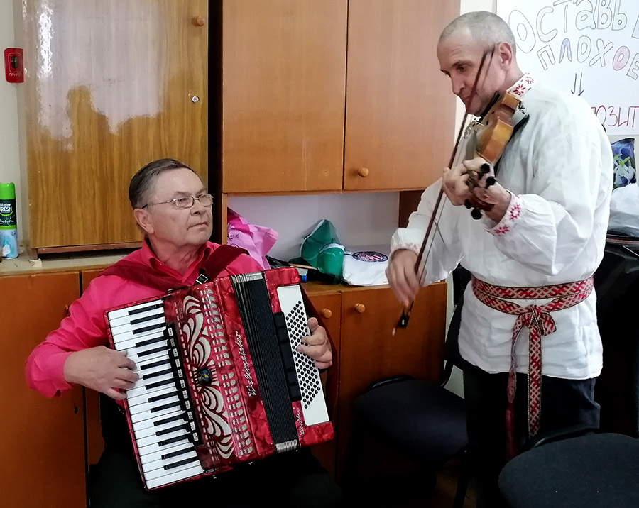 Перад прысутнымі напрыканцы імпрэзы выступілі і запрошаныя госці з Лепельшчыны і Глыбоччыны Васіль Шкіндзер і Даніла Ермаковіч. Яны сыгралі на скрыпцы, дудзе і акардэоне. А пасля паказалі характэрныя для іх мясцовасці беларускія танцы.