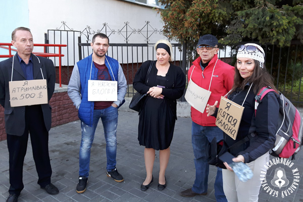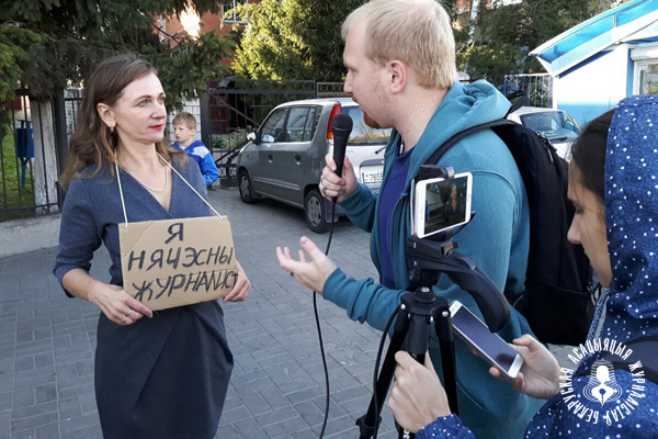 У самой Ларысы Шчыраковай на шыі вісела таблічка з кардону з надпісам: “Я — нячэсны журналіст”.
