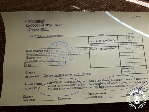 Прызначэнне: для залічэння на дабрачынны рахунак № 749142–00631-000001, Ліс Дар’я Алегаўна.
