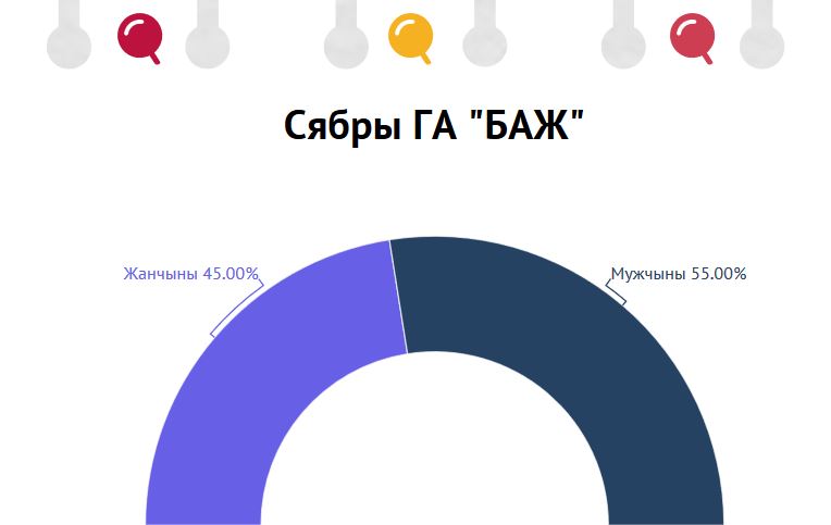 Сярод сябраў ГА “Беларуская асацыяцыя журналістаў” — 45 % жанчын і 55 % мужчын.