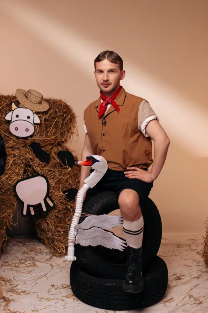 АМ: Напрыклад, рабіць фігуры з саломы — паравозік і кароўку, лебедзя з шын. У асноўным, усё, што тычыцца дэкарацый, бо гэта мая зона адказнасці.