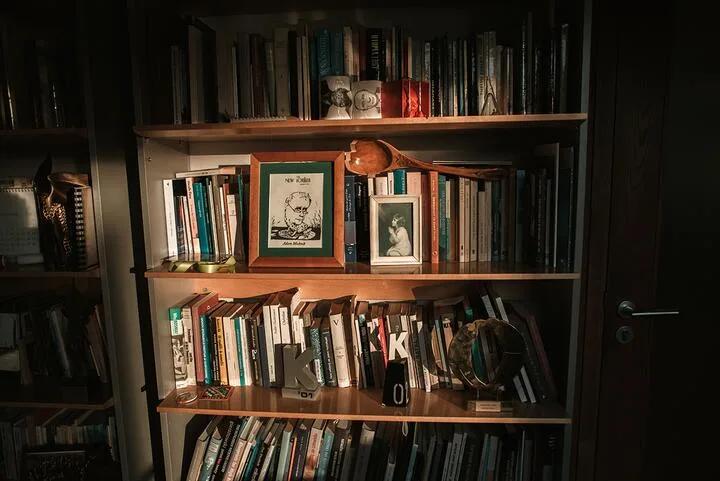 Кніжны стэлаж у кабінеце Адама Міхніка, галоўнага рэдактара «Газеты Выборчай». Варшава, Польшча, 22 лістапада 2024 года. Фота: «Люстэрка»