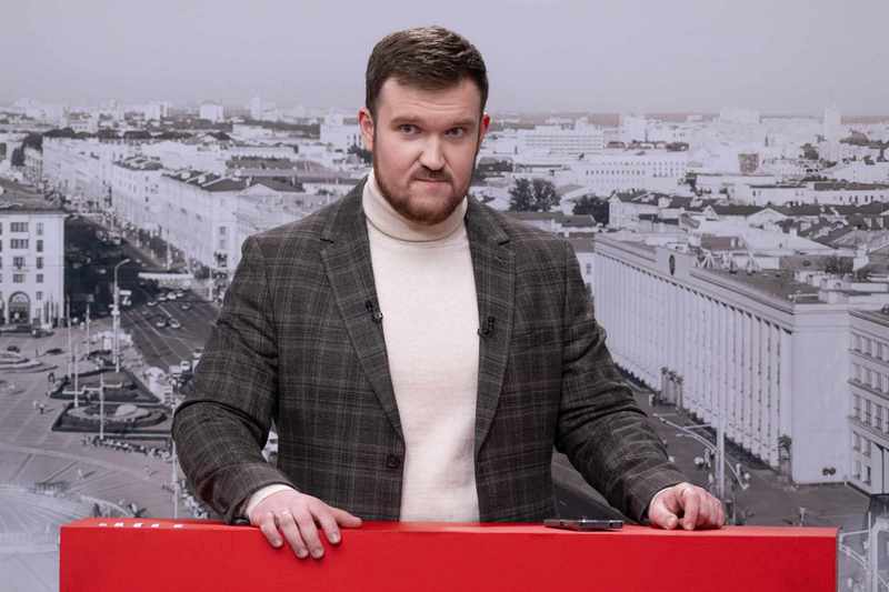Зміцер Міцкевіч у студыі «Белсата». Фота: Facebook