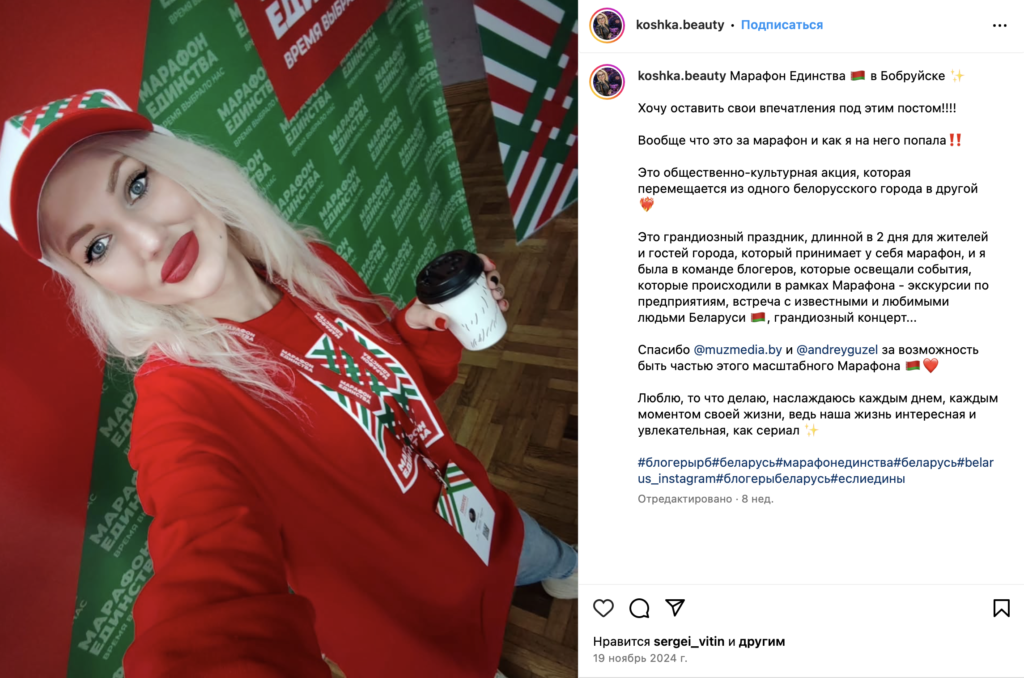 Кацярына Залынская на «Марафоне адзінства». Крыніца: інстаграм-акаўнт @koshka.beauty