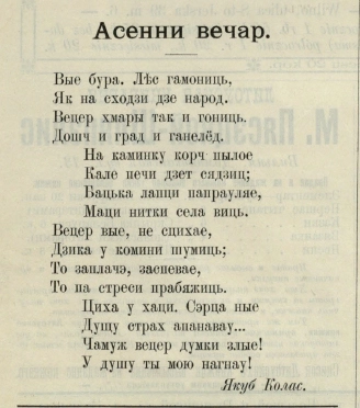 «Прачнуўшыся з цяжкага сну народ, падняўся як рака на вясну за вялікае дзела свабоды й лепшае долі. Толькі з‑пад страхі цёмнае хаты мужыка беларуса як даўней, як сотні гадоў таму назад веець холадам магільнага сну. Там нядоля, цямнота і голад, яго прадаўныя ворагі, зьвілі сабе крэпкае гняздо, разрасьліся, разпладзіліся. Бывалі такі і гэтакія хвіліны ў гісторыі апошніх гадоў, што прасыпаўся і беларус.