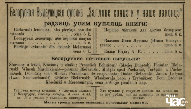 Усім, хто меў адвагу заглянуць у наша жыцьцё, сэрцы кроўю сплывалі гледзячы на ўсё гэта. І пачалі людзі шукаць прычыны нашае нядолі. Шукалі ў кніжках, пыталі ў самога жыцьця. І ўсюды быў адзін адказ: “Дайце беларусу такую кніжку, каб ён зразумеў, што у ёй напісана. Толькі кніжка, напісаная на мове бацькоў яго, патрапіць сноп сьвету закінуць у цяжкое жыцьцё беларуса, толькі яна патрапіць холад і голад выжануць з мужыцкае хаты, толькі яна пакажа яму дарогу да лепшае ясьнейшае долі!”.