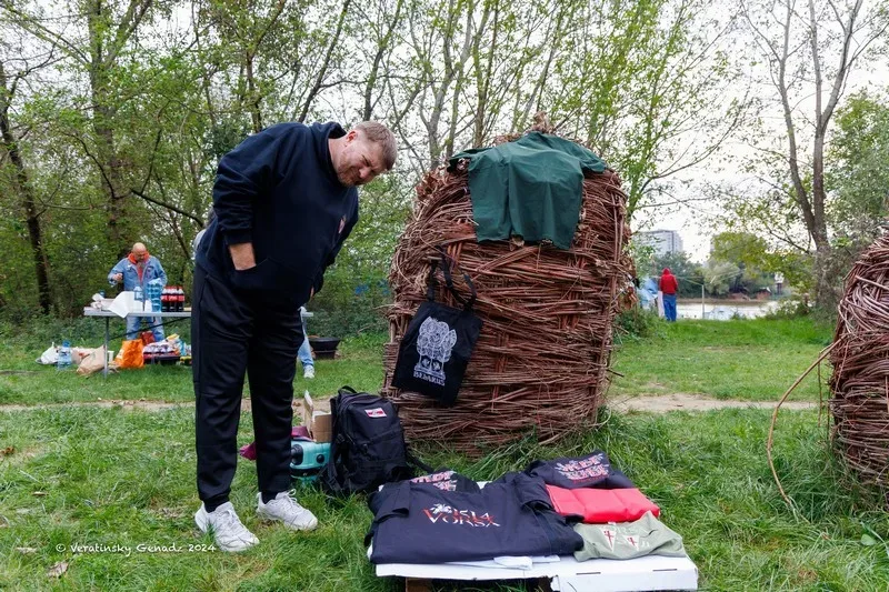 Андрэй Мялешка прадае цішоткі на фэсце ў Варшаве. Фота: Генадзь Верацінскі