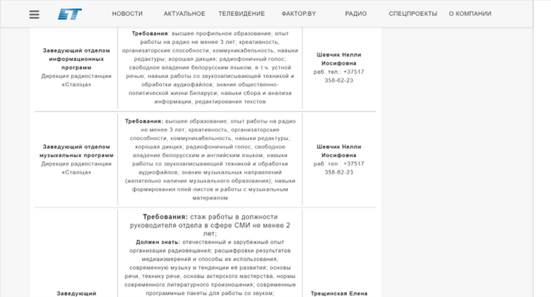 Беларускае тэлебачанне шукае адразу 22 спецыялістаў: ад вадзіцеля аўтамабіля аўтатранспартнага цэха ды слесара да рэдактараў і выканадаўчага прадзюсера АНТ.