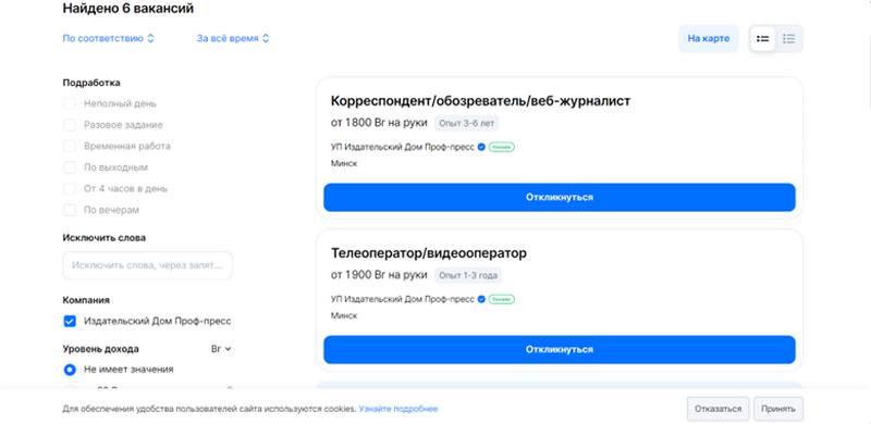 Скрыншот з сайта rabota.by