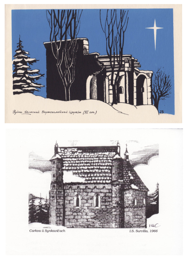 Вяршыня эстэтычнага майстэрства дыяспарнай каляднай паштоўкі — сюжэты аўтарства Івонкі Сурвіллы ды яе бацькі Уладзіміра Шыманца. Гэта густоўная графіка з зімовымі беларускімі краявідамі ды помнікамі архітэктуры (царква ў Сынкавічах, Барыса-Глебская царква ў Горадні). Або — малюнак з дзяўчынкай, якая выглядае зорку ў калядным небе.