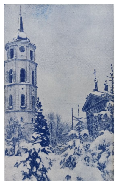 У настальгічную тэму кладзецца паштоўка з выявай зімовай Вільні: катэдра і званіца пад снегам. Цікава, што віленская тэма яшчэ доўга не адпускала беларусаў на чужыне: шмат для каго гэта быў родны горад. Настальгічныя паштоўкі з выявамі Горадні ды іншых мясцовасцяў вядомыя, але гэта іншая гісторыя.