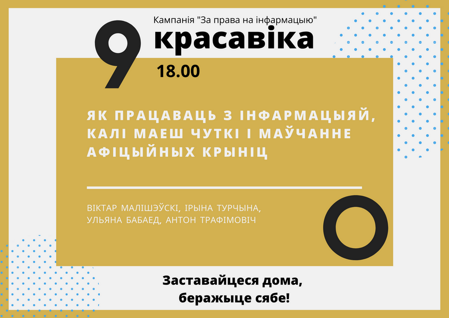 У красавіку кампанія “За права на інфармацыю” правядзе шэраг вэбінараў. Сачыце за анонсамі на нашым сайце!