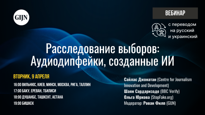 Аўдыёдыпфейкі, створаныя ШІ: Вэбінар GIJN з серыі «Расследаванне выбараў» (9 красавіка 2024 года)