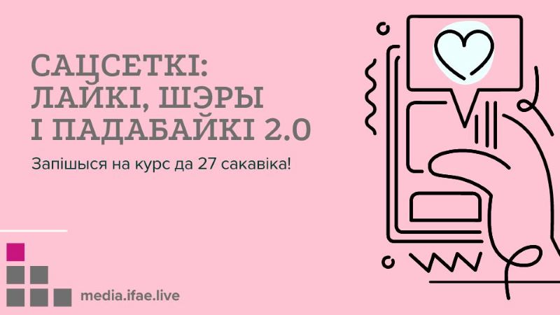Міжнародны фонд развіцця адукацыі дарослых IFAE запрашае на курс «Сацсеткі: лайкі, шэры і падабайкі 2.0». Гэта праграма для медыйшчыкаў і камунікатараў, якія жадаюць карыстацца сацсеткамі эфектыўна. Удзельнікі навучацца граматна ставіць мэты сваёй працы ў сацыяльных сетках, абіраць аўдыторыю, ствараць кантэнт-планы і кантэнт, які «зачэпіць» людзей.