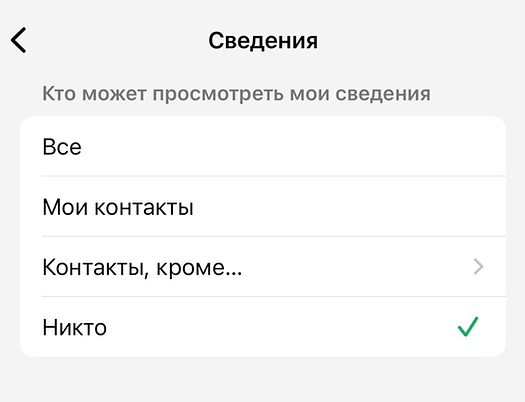 Аналогично настройкам фото, можно выбрать круг лиц, которые видят ваше описание в профиле.