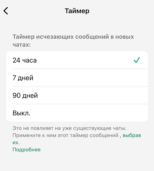 Здесь вы можете отключить/включить отправку геопозиции через мессенджер. Чтобы нельзя было отслеживать ваше местоположение, рекомендуем отключить опцию.