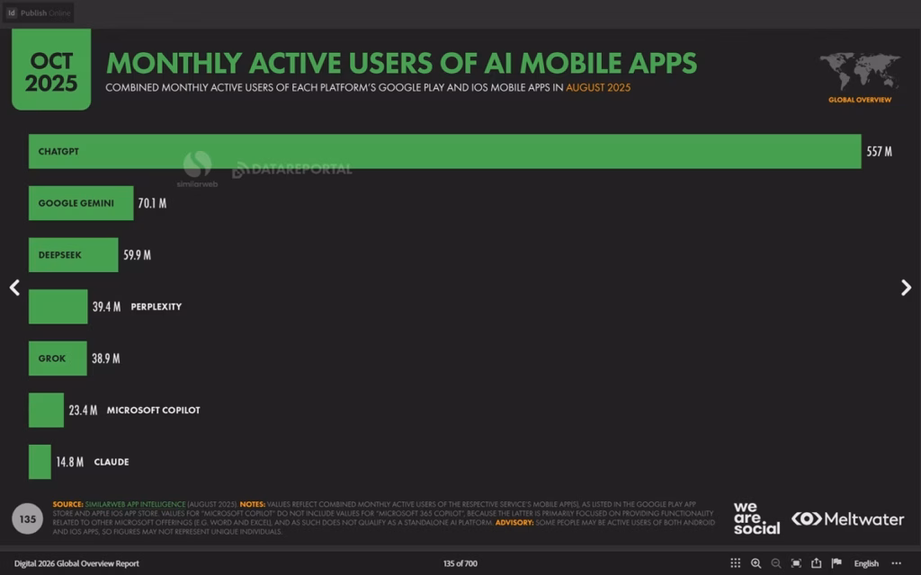 Количество пользователей мобильных приложений ИИ / Инфографика Digital 2026 Global Overview Report