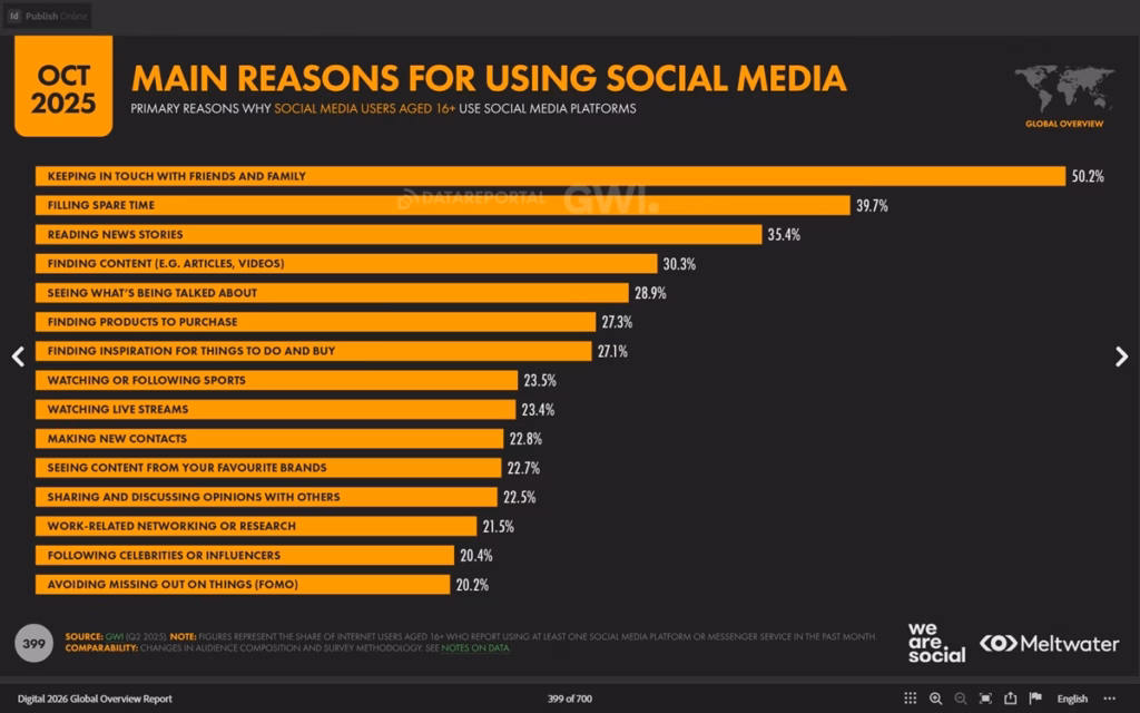 Главные причины использования соцсетей / Инфографика Digital 2026 Global Overview Report