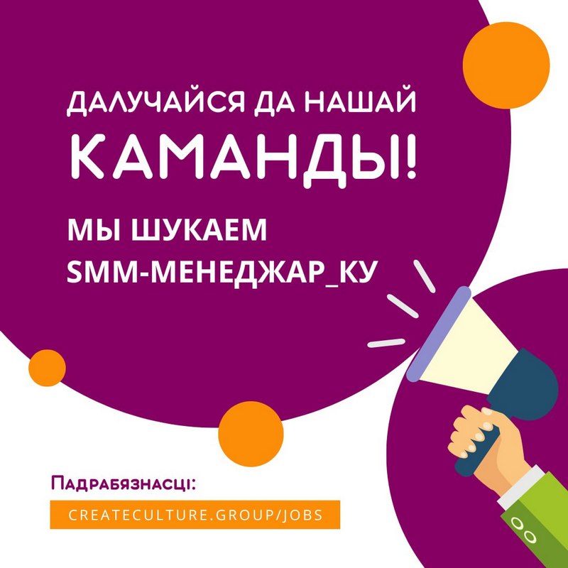 вопыт працы ў якасці SMM менеджэра ў творчай сферы, ідэальна – у культурнай прасторы, хабе ці некамерцыйнай арганізаціі;
