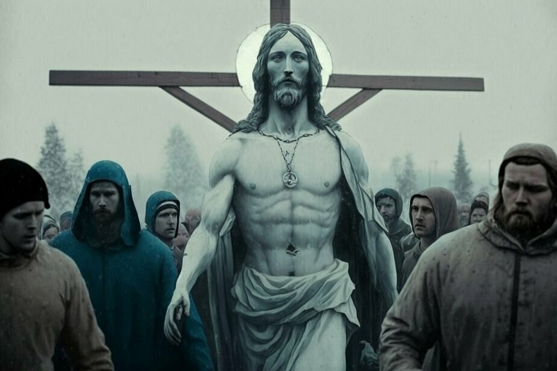 4) Ілюстрацыя на тэму «Хрыстос прызямліўся ў Гародні» — The illustration on the topic «Christ appears in Grodno».