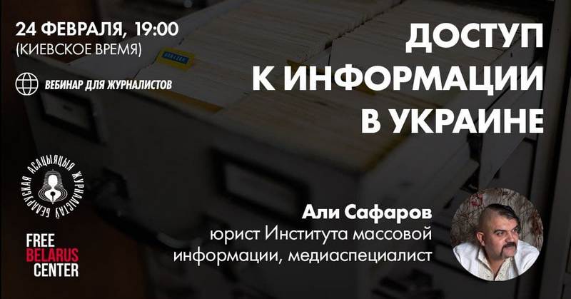Следующая лекция на тему: «Доступ к информации в Украине» пройдет 24 февраля в 19:00 по Киевскому времени (20:00 по Минску).