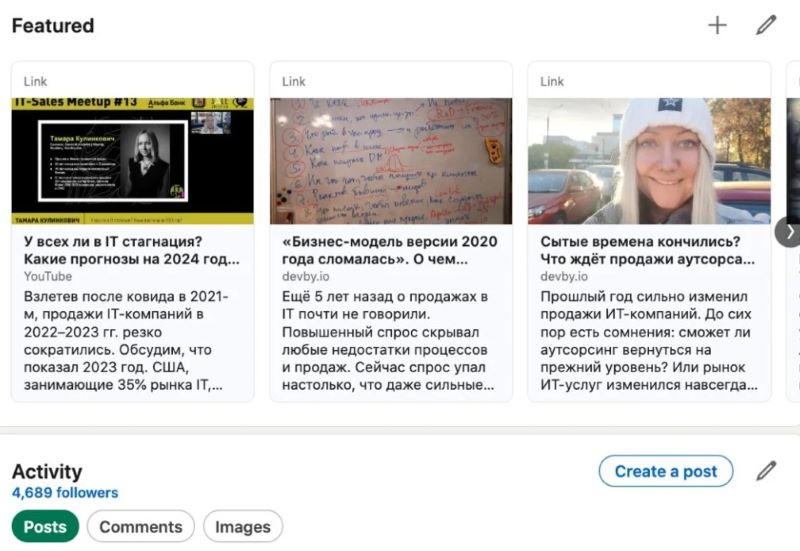 Как удовлетворить алгоритмы LinkedIn и сформировать доверие живых людей? Своими советами на dev.by делится Тамара Кулинкович, основательница сообщества IT sales&marketing и совладелица «Студии Сорокина и Кулинкович» и Академии нетехнического IT Skademy.by.