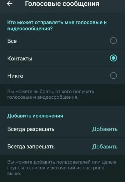 Затем надо ограничить возможность отправки сообщений от незнакомых пользователей (такая функция появилась в Telegram недавно и пока доступна для владельцев Telegram Premium). Снова идем в настройки — выбираем «Конфиденциальность». В разделе «Голосовые сообщения» выбираем или «Контакты», или «Никто» (в зависимости от того, насколько вы готовы слушать голосовые сообщения от своих друзей и коллег).