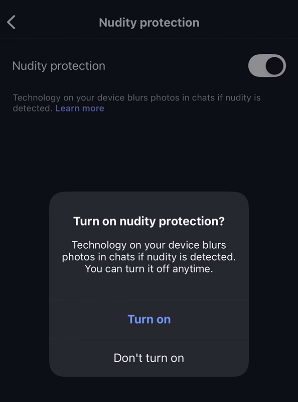 Включить Nudity Protection можно в Настройках → Messages and story replies.