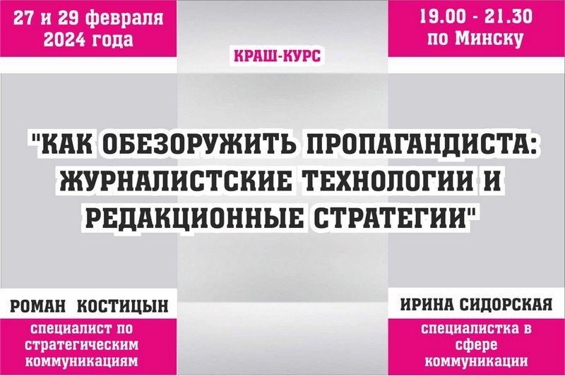 «Редакционные стратегии устойчивого противодействия пропаганде» — 29 февраля с 19.00 до 21.30 по Минску