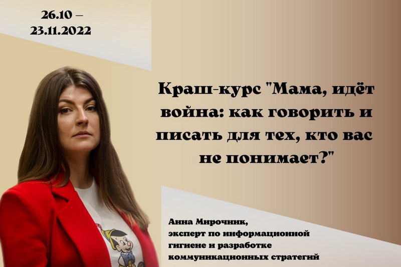 Курс Анны Мирочник «Мама, идёт война: как говорить и писать для тех, кто вас не понимает» (регистрация до 22 октября)