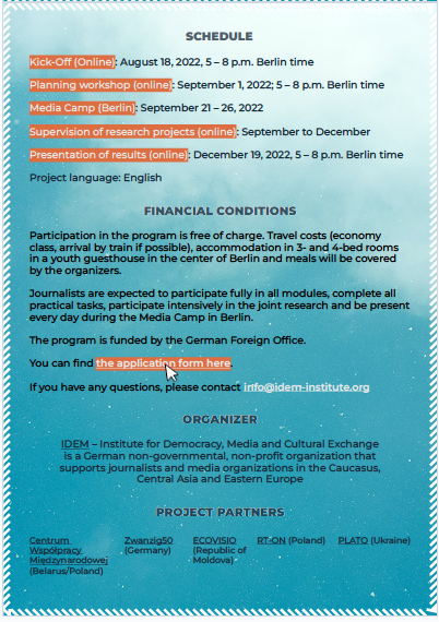 MEDIA CAMP для журналистов, блогеров и студентов журналистики. В том числе из Беларуси (до 21 июля)