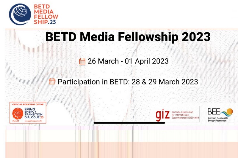 Урад Германіі арганізуе штогадовы грамадскі «Берлінскі дыялог па энергетыцы», які стаў вядучым міжнародным форумам па пераходзе да «зялёнай» энергетыкі. Стыпендыя BETD Media дазваляе маладым журналістам з усяго свету сабрацца ў сталіцы Германіі, каб атрымаць доступ да гэтай эксклюзіўнай канферэнцыі, паразмаўляць з высокапастаўленымі прадстаўнікамі навукі, палітыкі, прамысловасці і грамадзянскай супольнасці, а таксама пагутарыць з іншымі СМІ BETD.
