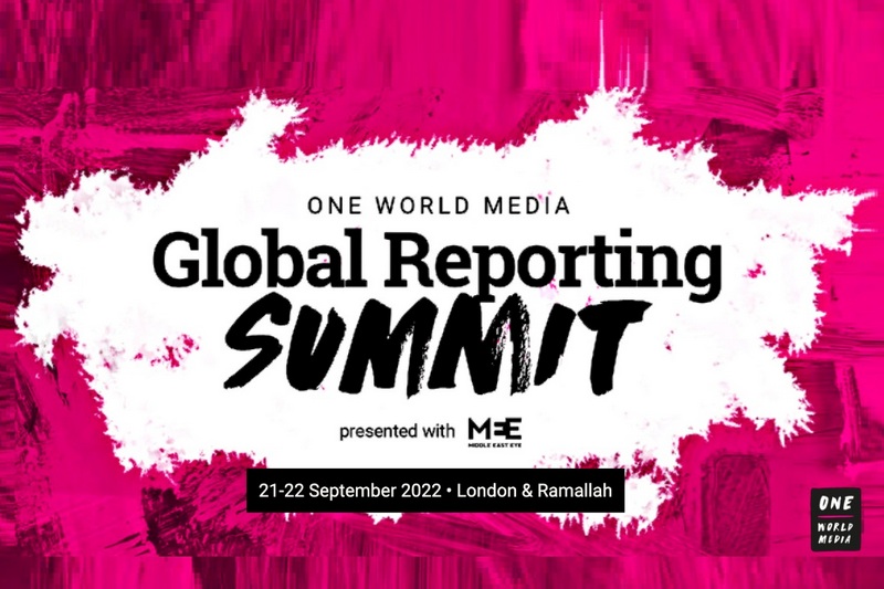 One World Media проводит Глобальный саммит для журналистов (Global Reporting Summit 2022), который будет проходить 21 и 22 сентября в Лондоне и Рамалле. Первый день саммита пройдет в Рамалле, а второй — в Лондоне. Все сессии будут доступны онлайн на платформах Vimeo и YouTube.