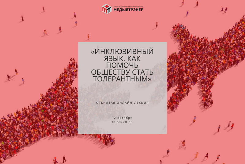 Открытую лекцию «Инклюзивный язык. Как помочь обществу стать толерантным» проводит Учреждение «Центр подготовки медиаспециалистов «Медиатренер» в рамках Антивирусного онлайн-марафона».