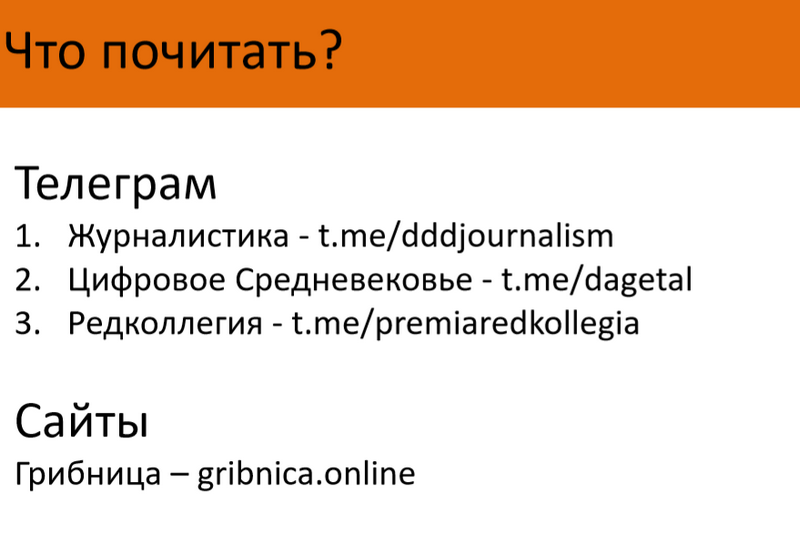 Если тема питчей крепко держит, то Максим Поляков рекомендует обратить внимание на эти каналы в Телеграм, а ещё на сайт gribnica.online.