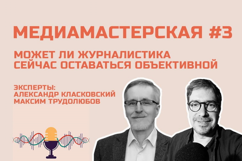 Говорим про объективную журналистику в периоды кризисов вместе с медиаэкспертами, журналистами Александром Класковским (информационная компания «БелаПАН», Беларусь) и Максимом Трудолюбовым (издание «Медуза» и др., Россия).