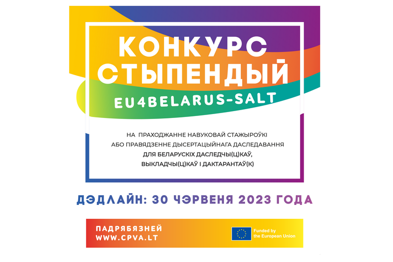 Праграма «EU4Belarus – SALT (Support for Advanced Learning and Training)» абвяшчае конкурс на атрыманне акадэмічных стыпендый для беларускіх даследчы(ц)каў, выкладчы(ц)каў і дактарантаў(к), якія пацярпелі ад рэпрэсій або якім пагражаюць рэпрэсіі ў сувязі з іх актыўнай грамадзянскай пазіцыяй.