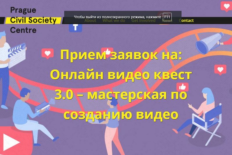 Пражский гражданский центр помогает журналистам, активистам и креативным профессионалам повышать их навыки работы с видео с 2017 года. Мы накопили огромный опыт и выстроили отношения с лучшими профессионалами в сфере видеопроизводства. Поэтому основной фокус этого видеоквеста будет на прямом взаимодействии участников с наставниками.