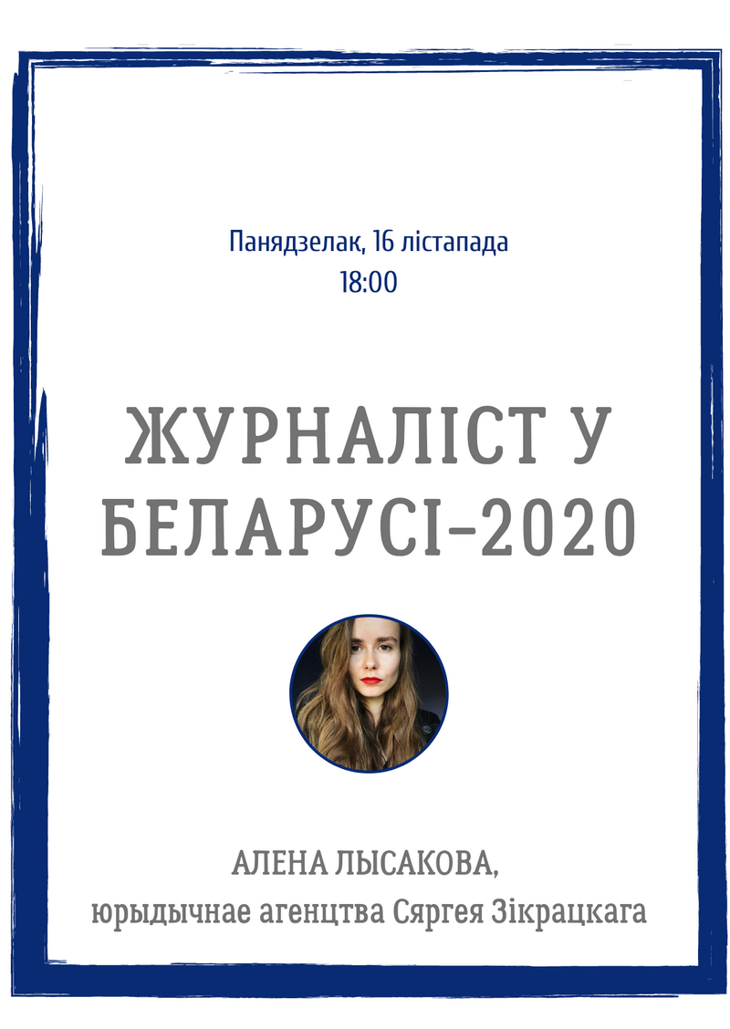 Пытанні бяспекі журналістаў: zoom-сустрэча з юрыстам Аленай Лысаковай (панядзелак, 18:00)
