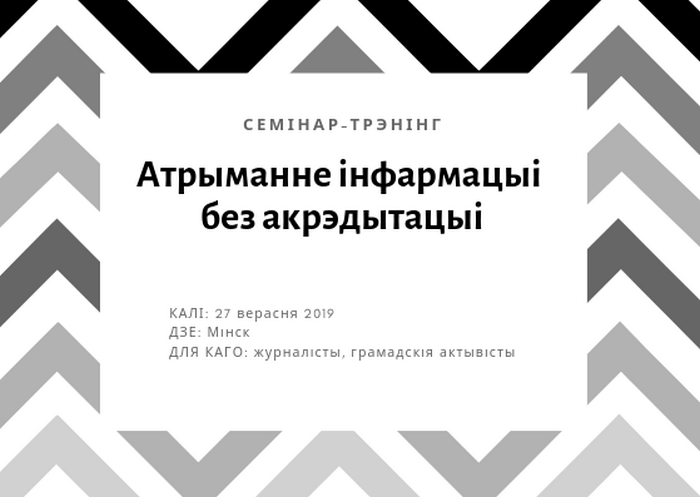 В Минске 27 сентября 2019 года планируется провести семинар-тренинг по доступу к информации с использованием механизмов Закона Республики Беларусь об обращениях граждан и юридических лиц, Указа о дополнительных мерах в работе с обращениями граждан, механизма административных процедур и принципа «Одно окно».
