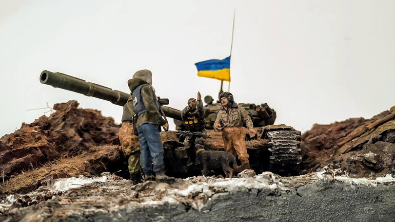 Беларускі журналіст Серж Харытонаў у школе займаўся мадэлізмам. Праз дзесяць гадоў калега вярнуўся да колішняга хобі і за два месяцы вылепіў інсталяцыю ў гонар ваенных журналістаў, якія асвятляюць канфлікт на Данбасе.