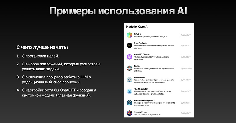 Таксама нейрасетка карысная ў планаванні складанага рэдакцыйнага прадукту. Яна пакрокава распіша, што трэба зрабіць, а пры запыце дэталізуе працэсы.